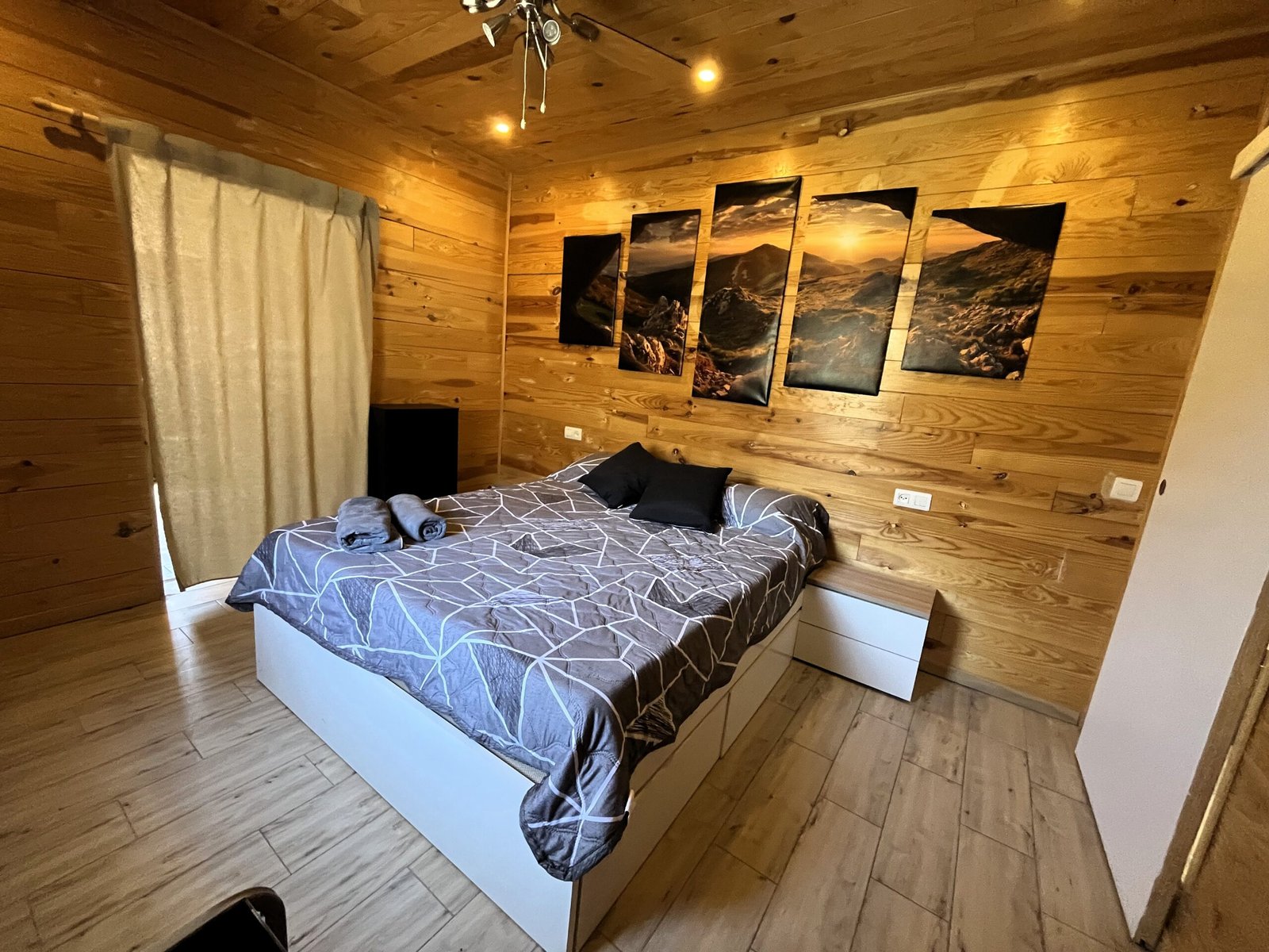 El dormitorio «Montaña» te invita a descansar en un ambiente tranquilo y acogedor, inspirado en la serenidad de las montañas que rodean la casita: