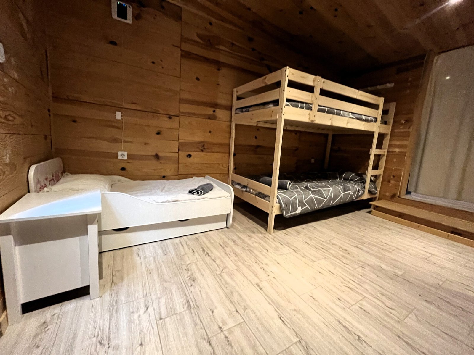 Cama Extra Infantil: Además de las literas, hay una cama extra infantil, asegurando que haya espacio suficiente para todos.