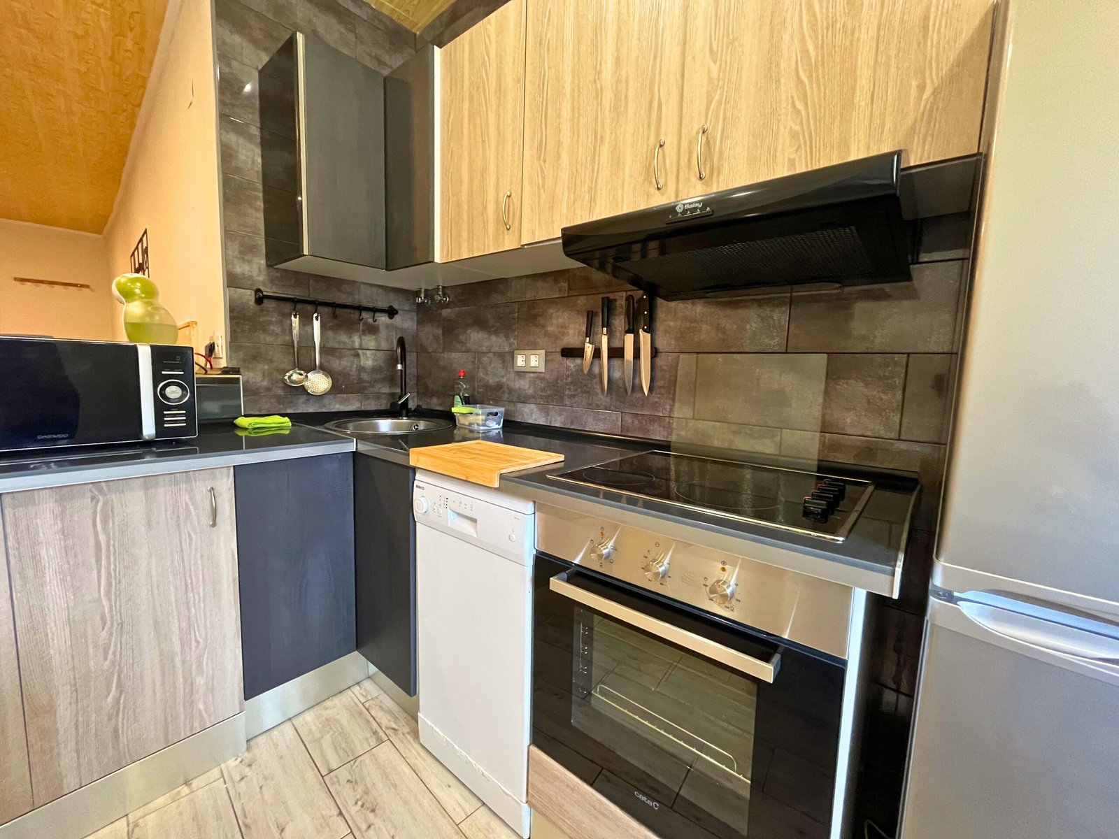 Menaje Completo: La cocina está equipada con todo el menaje necesario, desde ollas y sartenes hasta cubertería y utensilios de cocina, para que no te falte de nada a la hora de cocinar.